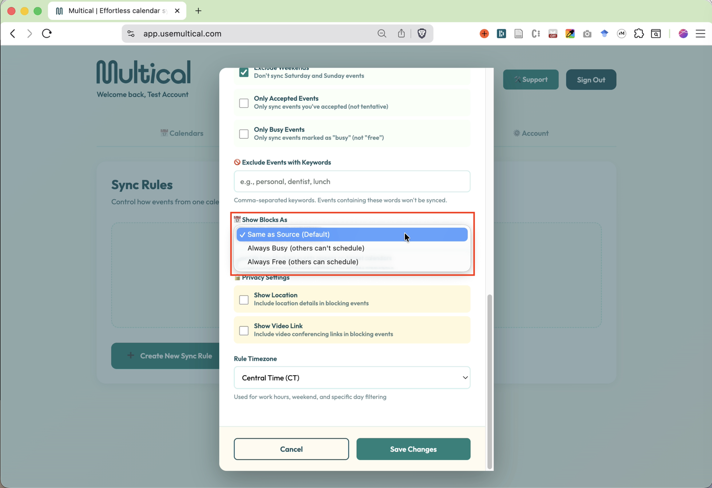 Decide whether or not to sync only events marked as busy on the source calendar