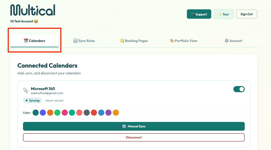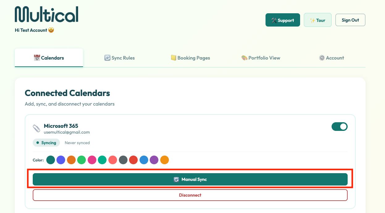 2. Click the one of the Manual Sync buttons. Note: This will trigger a re-sync of all of your calendars. You do not need to click the button for each calendar.